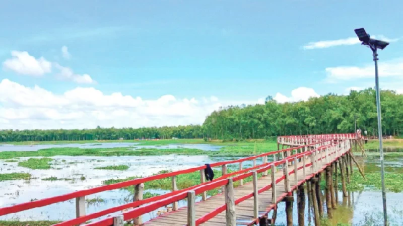 Instead of sitting quietly for a long time, the local upazila administration, with the help of several public representatives, took various initiatives to bring back the lost enthusiasm of the Ashura Bill by taking possession of this spectacular place which has been in illegal possession for a long time. A cross drum was constructed funded by Bangladesh Agricultural Development Corporation to retain water in the eastern part of the bill to restore its former beauty. As a result the water rises in the bill and the lotus and lotus bloom as if in competition. Various species of fish including red khalshe, kakila, dhedhal are increasing. After two long decades, thousands of migratory birds such as mallards, mallards, snails, hawksbills, white manikjors, rangamudis and other species flocked to Ashura again to find their winter abode. The country's largest crooked wooden bridge was built to connect the bill and the forest. The English Z-shaped bridge with the wood and bill woven together is named 'Bangamata Sheikh Fazilatunnesa Wooden Bridge'. Ashura's Bill and Sheikh Russell National Park has become one of the destinations for travel enthusiasts. Realizing the socio-economic and natural importance of the area based on the Ashura Bill, the local administration undertakes various developmental activities.