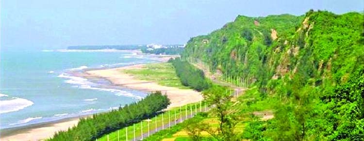 The beach in Cox's Bazar has a gentle slope and with an unbroken length of 155 km (96 mi) it is often termed the "longest natural unbroken sea beach" in the world.
